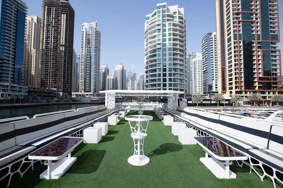 Ideal for grand celebrations, corporate events, and extravagant parties, the 155 Feet Yacht features spacious and elegantly designed interiors, expansive outdoor areas, and top-of-the-line amenities perfect for entertaining large groups. Enjoy breathtaking views of Dubai’s iconic skyline and stunning coastline while indulging in a day of luxury and relaxation.